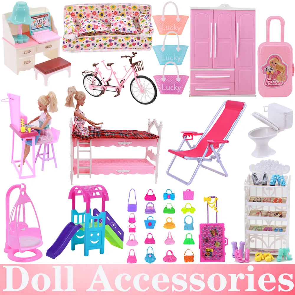 Babi Mix Style Doll Furniture Wardrobe Bed Chair Sofa Shoe Rack Slide For Babi Doll Accessories Kelly 1:12 Doll Girl`s Toy